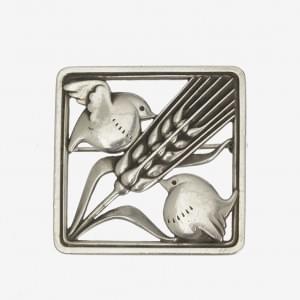 Broche carrée ajourée à motif d'épis de blé et oiseaux, poinçons...