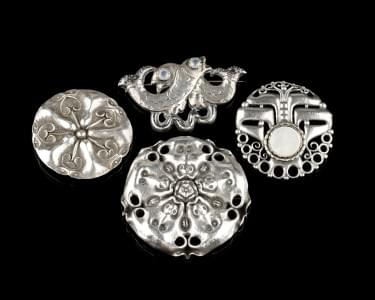Broche circulaire représentant une rosace de cinq têtes de babou...