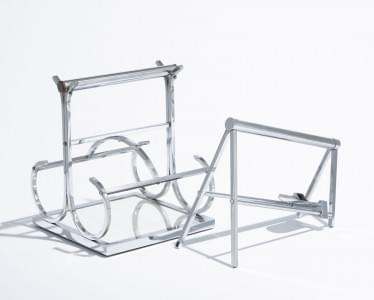 Deux supports de bouteilles, métal chromé, H 23 et 28 cm