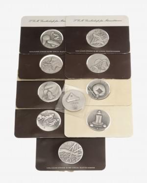 Les Dix Commandements, suite de 10 médailles en argent réunies d...