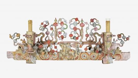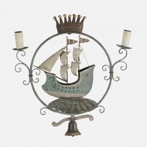 A décor d'une nef, tôle laquée polychrome, H 71 cm