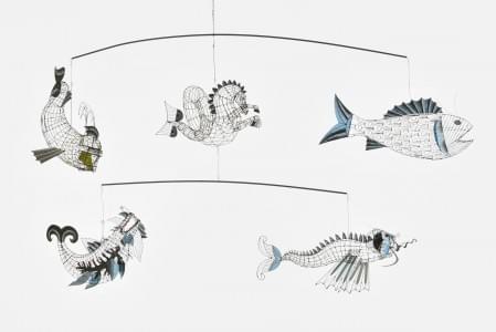 Fil de fer peint à décor d'animaux marins, 100x150 cm