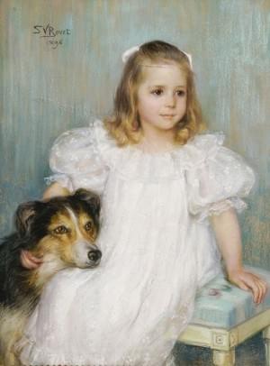 Portrait de jeune fille au chien, pastel, signé et daté 1896, 83...