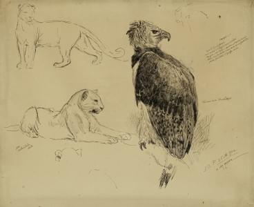 Etude d'animaux, plume, signée et datée 25 oct. 1902, 31x 38 cm