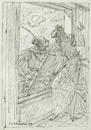 Roméo et Juliette, encre sur papier, signée et datée 69, 30x21 c...