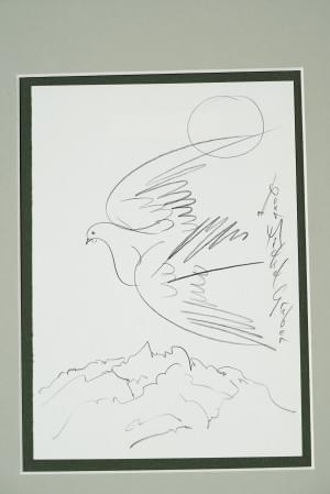 Colombe, mine de plomb sur papier, dédicacée, 21x14,5 cm