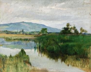 Paysage lacustre, huile sur toile, 46x55 cm