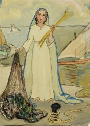 La Sainte Vierge, gouache et mine de plomb sur papier, monogramm...