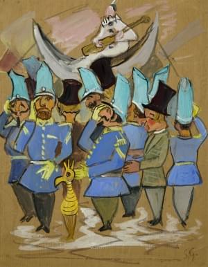 Masques et Carnaval, aquarelle et gouache sur papier, 60x46 cm,...