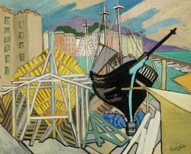 Chantier naval, huile sur pavatex, 60x75 cm