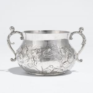 488. Porringer à motif repoussé de lion et cerf d'époque Charles II,