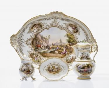 Meissen, circa 1770, comprenant: plateau, verseuse, crémier et r...