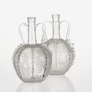 492. Paire de carafes à motif de parecloses gravés
