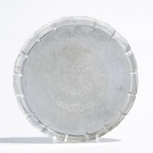 503. Plateau rond à bordure relevée mouvementée, gravé au centre d'ar...