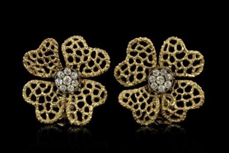 698. Clips d'oreilles à motif de fleurs sertis de diamants