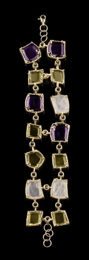 707. Bracelet deux rangs de quartz taille fantaisie (améthystes, quar...