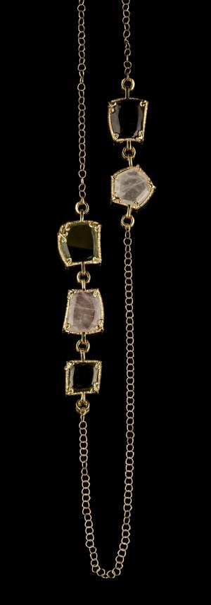 708. Sautoir à maille ronde serti de quartz taille fantaisie (améthys...