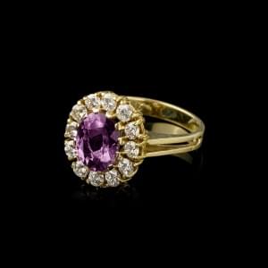 709. Bague sertie d'une tourmaline rose en cabochon entourée de diama...