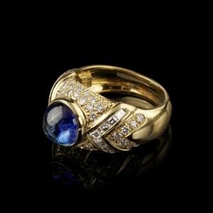 717. Bague sertie d'un saphir cabochon entouré de diamants