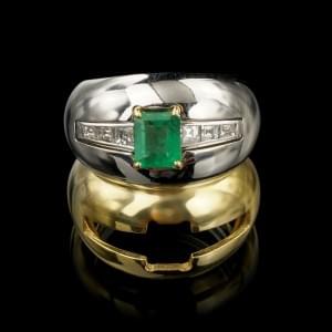 728. Bague sertie d'une émeraude rectangulaire (env. 1,2 ct) épaulée...