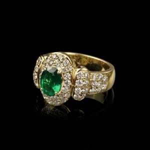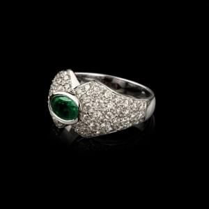 733. Bague sertie d'une émeraude cabochon entourée de diamants
