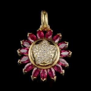735. Pendentif fleur à motif d'étoile en diamants entourée de rubis t...
