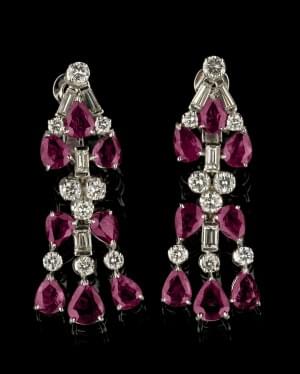 750. Clips d'oreilles sertis de rubis taille poire (env. 11 ct) et de...
