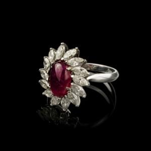 753. Bague sertie d'un rubis birman cabochon non chauffé (env. 3,7 ct...