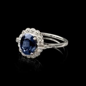 719. Bague sertie d'un saphir ovale (env. 2 ct) entouré et épaulé de...