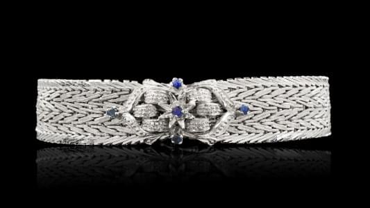 761. Bracelet à maille palmier plate orné d'un motif serti de saphirs