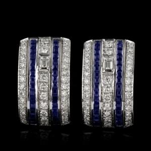 760. Paire de clips d'oreilles carrés stylisés sertis de saphirs
