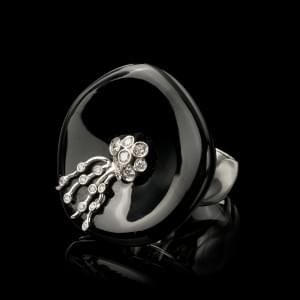 775. Bague sertie d'un onyx orné d'une méduse de diamants