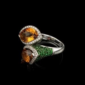 776. Bague toi et moi semi-pavée de grenats tsavorites et sertie de c...