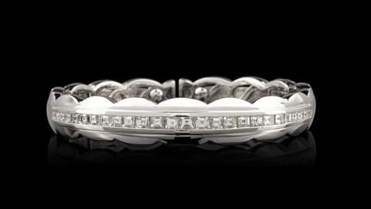 778. Bracelet jonc ouvrant serti d'une ligne de diamants calibrés (en...