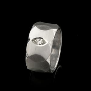 788. Anneau large stylisé serti d'un diamant taille navette (0,19 ct)