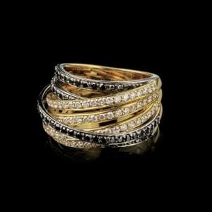 816. Bague multi-anneaux sertie de diamants blancs et noirs