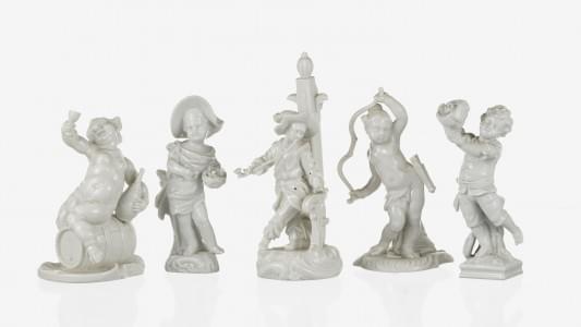Putti et enfants5 figurines en porcelaine allemande, H 10 cm. Pr...