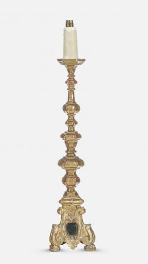 Bois sculpté et doré, incrustation de miroir, H 61 cm