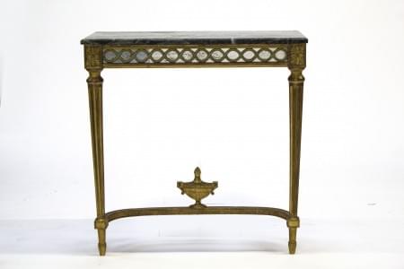Bois doré et patiné, parecloses, marbre vert, 82x82x36 cm