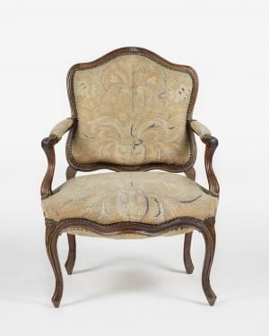 Hêtre mouluré et sculpté, garniture au petit point à décor de ri...