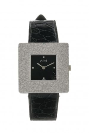 Cadran noir, aiguilles argentées, or gris 750, 28x28 mm, poids b...