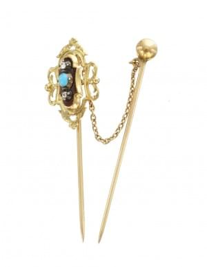 3148. Broche barrette sertie de turquoises, St Petersbourg