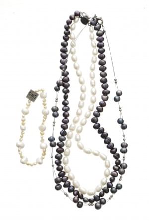 3117. Lot de trois colliers et d'un bracelet de perles d'eau douce et...