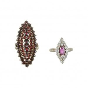 3191. Lot de deux bagues anciennes serties de diamants et rose de diam...