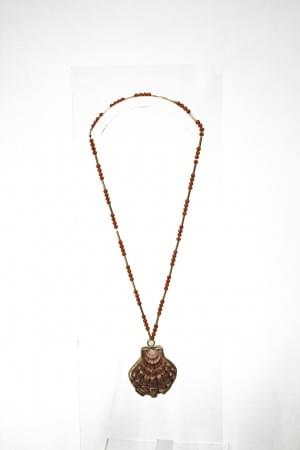 3125. Collier de perles de corail retenant un pendentif coquillage ouv...