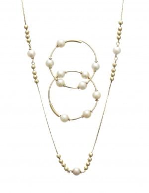 3130. Lot d'un collier et d'une paire de créoles sertis de perles