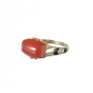 3144. Bague émaillée sertie d'une cornaline en cabochon taille fantais...