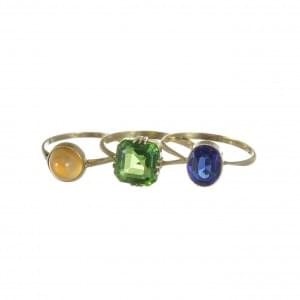 3145. Lot de trois bagues, l'une sertie d'une pierre jaune, les deux a...