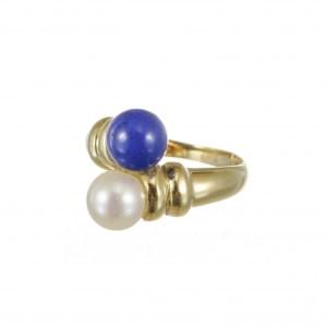 3158. Bague toi et moi sertie d'une perle et d'une boule de lapis-lazu...