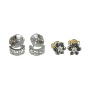 3147. Ensemble de deux paires de clous d'oreilles, l'une sertie de per...